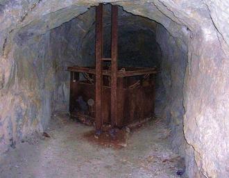 Keywords: Malá Amerika, bedna.jpg Lomy Amerika přepravní bedna v odbočce Hlavní štoly u Malé Ameriky 2007 own Speleman Malá Amerika Hlavní štola Lomy Mořina