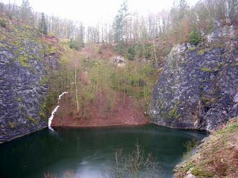 Keywords: Malá Amerika, z Galerie k západu c.jpg Lomy Amerika pohled z Hlavní štoly Galerie k západnímu konci lomu 2007 own Speleman Malá Amerika