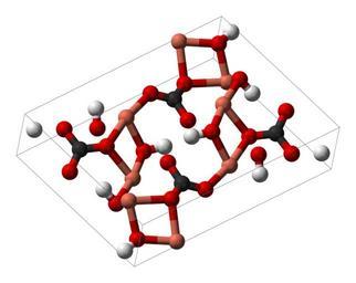 Keywords: Malachite-unit-cell-3D-balls.png Malachite Crystal structures of carbonates Crystal structures of copper salts Unit cells