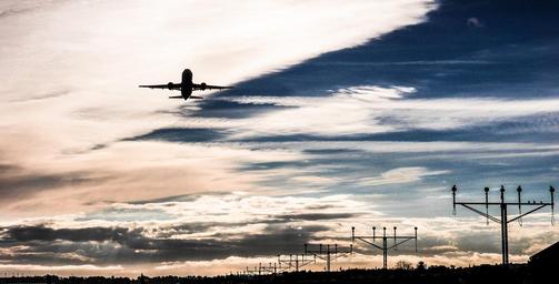 Keywords: malaga airport pablo ruiz picasso dawn aircraft take off takeoff blue clouds sky andalusia malaga spain