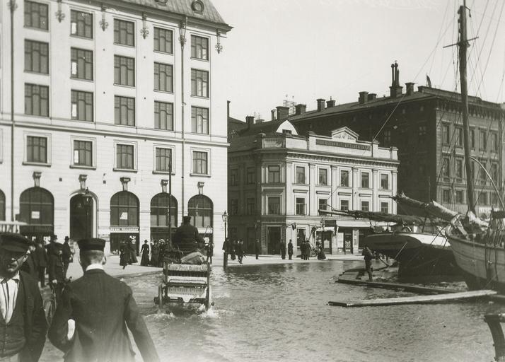 Keywords: Mälartorget 1904.jpg sv Mälartorget med översvämning Stockholms stadsmuseum A Malmström 1904 Kvarteret Iason Mälartorget Kvarteret Midas 1904 in Stockholm Gamla stan in the 1900s PD-old
