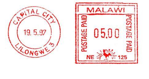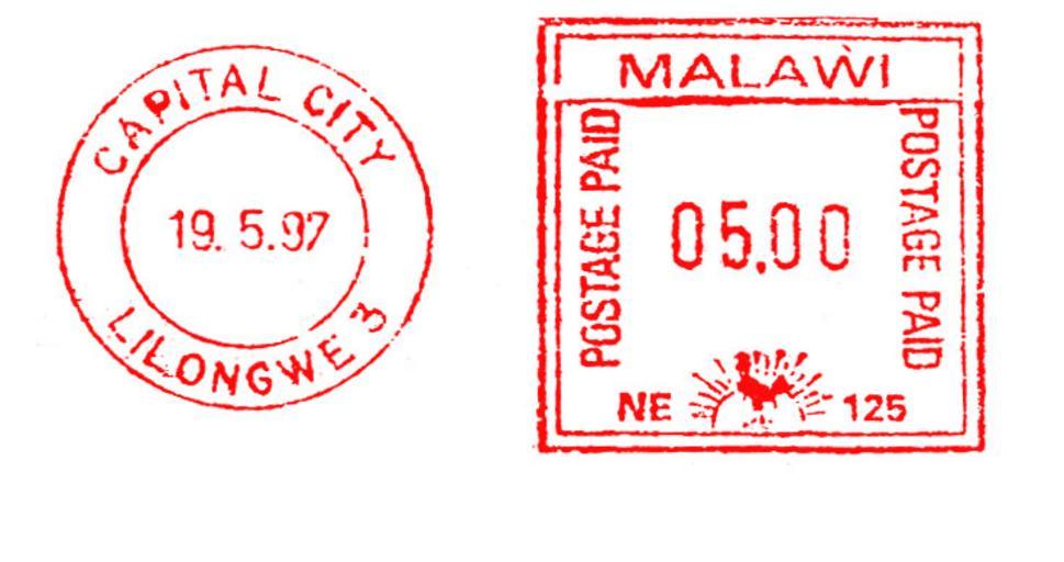 Keywords: Malawi stamp type C11.jpg en Meter stamp catalog image Malawi type C11 Richard Stambaugh Richard Stambaugh 2012-02-04 Meter stamps
