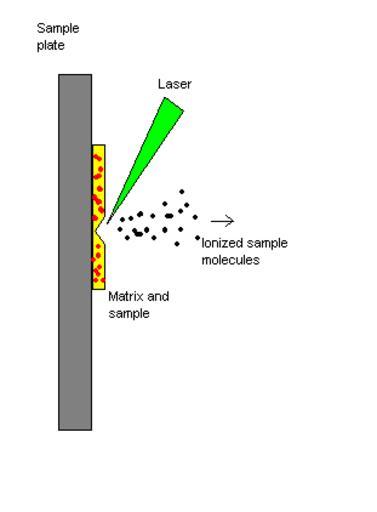 Keywords: Maldi.PNG MS Paint diagram of Matrix Assisted Laser Desorption Ionization Drawn by wikimedia user Riticeninjas 2007-04-03 own assumed Riticeninjas Unidentified diagrams Ion source