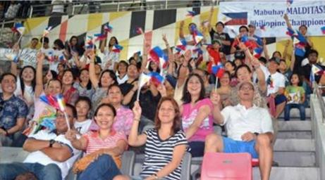 | Keywords: Malditas bangladesh match fans 2.jpg en Fans of the Philippine women ™s football team in attendance at the Bangabandhu National Stadium for the Bangladesh v Philippines match held on May 25 2013 2013-05-25 http //www gov ph/2013/05/28/phl-embassy-in-dhaka-extends-support-to-phl-womens-football-team-malditas/ PH Government other versions Custom license marker 2016 12 17 Official Gazette of the Philippines maintained by the Presidential Communications Development and Strategic Planning Office and PREGINET Philippines women's national association football team Bangabandhu National Stadium |