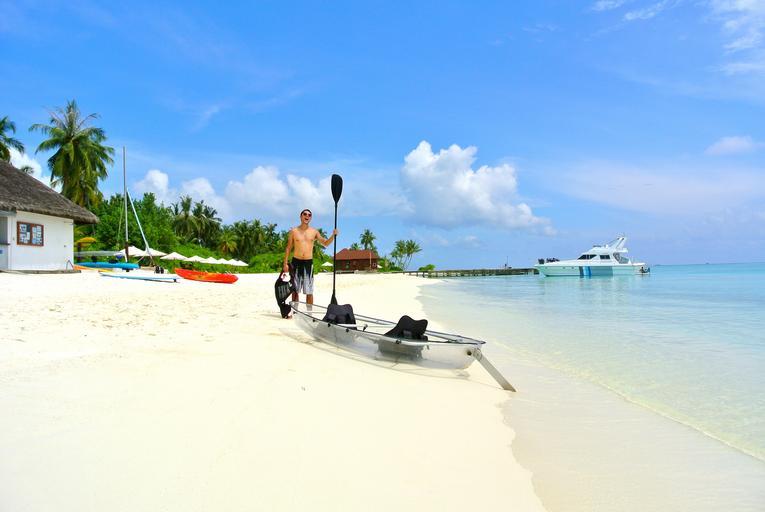 Keywords: maldives coconut tree sea resort summer holiday sky ocean beach travel sand cloud water kayak