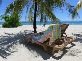 Keywords: maldives kuredu indian ocean summer holiday beach sun sea water blue deck chair sand relax palm trees