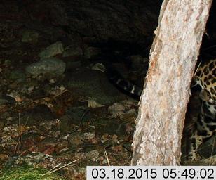 | Keywords: outdoor [UA Jaguar 2015 3-18.jpg] Male jaguar photographed by motion-detection wildlife cameras in the Santa Rita Mountains on March 18, 2015 as part of a U.S. Fish and Wildlife Service/Department of Homeland Security-funded jaguar survey conducted by University of Arizona. This is the same jaguar that has been repeatedly photographed in the Santa Rita Mountains. Photo Courtesy of UA/USFWS [UA Jaguar 2015 3-18.jpg] Male jaguar photographed by motion-detection wildlife cameras in the Santa Rita Mountains on March 18, 2015 as part of a U.S. Fish and Wildlife Service/Department of Homeland Security-funded jaguar survey conducted by University of Arizona. This is the same jaguar that has been repeatedly photographed in the Santa Rita Mountains. Photo Courtesy of UA/USFWS |