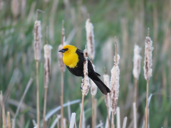 Keywords: male yellow-headed blackbird blackbird marsh bird bird yellow-headed nature songbird birdwatching marsh wetlands