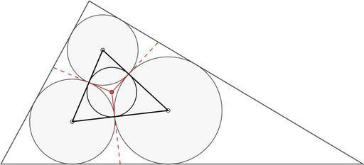 Keywords: Malfatti triangle.svg Triangolo di Malfatti; è il triangolo con vertici nei centri dei cerchi di Malfatti Own 2008-01-24 Personline Malfatti circles