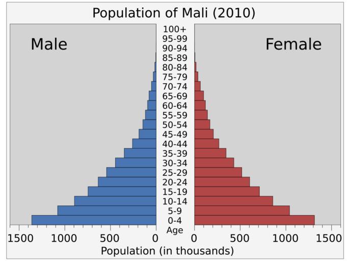 | Keywords: Malipop-2010.svg translate yes en 2010 population pyramid of Mali from UN estimates World Population Prospects http //esa un org/unpd/wpp/Excel-Data/population htm The 2012 Revision 2014-08-26 own Delphi234 cc-zero Population pyramids of Mali Uploaded with UploadWizard |