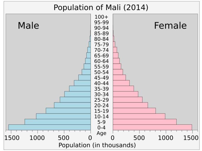 | Keywords: Malipop.svg translate yes en Current population pyramid of Mali 2014 from UN estimates World Population Prospects http //esa un org/unpd/wpp/Excel-Data/population htm The 2012 Revision 2014-08-26 own Delphi234 cc-zero Population pyramids of Mali Uploaded with UploadWizard |