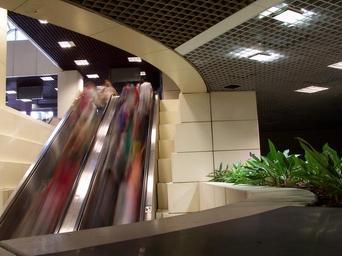 Keywords: mall escalator lifestyle people business urban building modern architecture blurred motion store shopping retail customer move