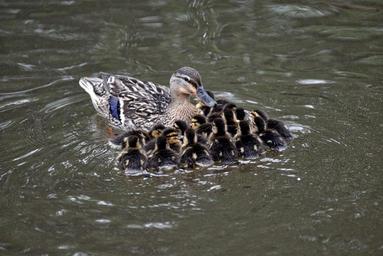 Keywords: mallard chicks pond swimming water wildlife waterfowl duckling wild
