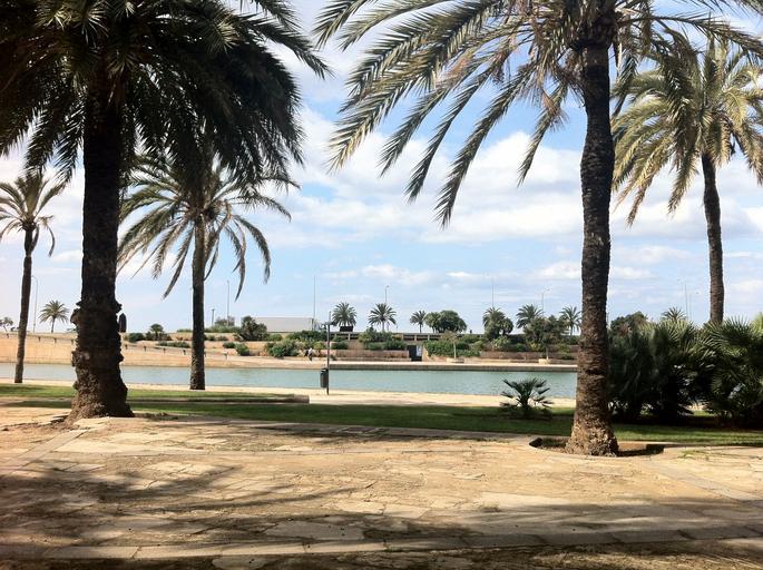 Keywords: mallorca spain palm trees walkway water trees palm lake