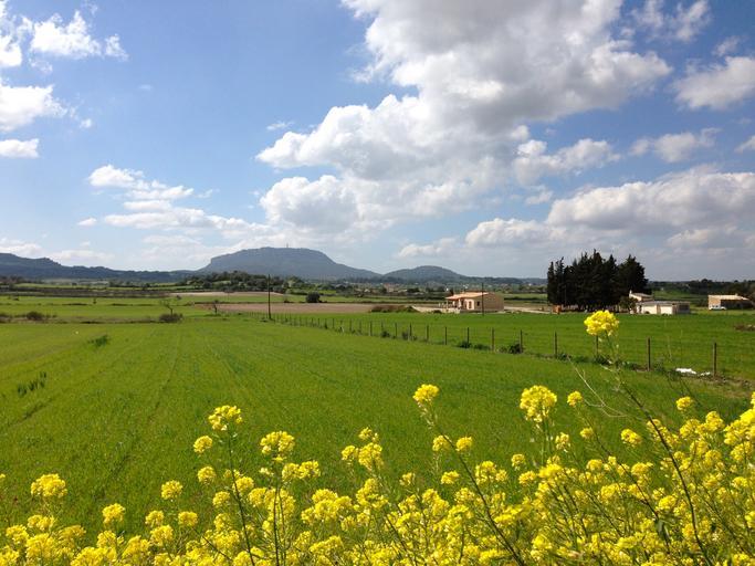 Keywords: mallorca spring bloom meadow randa mountain landscape sky