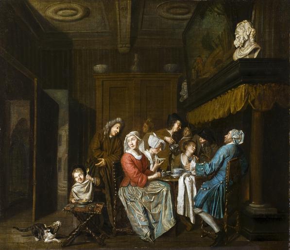 | Keywords: Målning. Horemans. Tedrickande sällskap - Hallwylska museet - 87178.tif Målningen förefaller vara ett verk av Jan Josef Horemans d ä då den uppvisar stora likheter med en snarlik scen signerad och 1715 daterad av konstnären i Herzog Anton-Ulrich Museum Braunschweig 1976 nr 1162 Horemans var krönikör över det förmögna borgerskapets liv i Antwerpen under 1700-talets förra hälft - - The painting would seem to be by Jan Josef Horemans the Elder when it is compared to a similar scene signed by the artist and dated 1715 in the Herzog Anton-Ulrich Museum Braunschweig 1976 no 1162 Horemans was a chronicler of the lives of Antwerp´s wealthy bourgeoisie in the first half of the 18th century original caption Målning Horemans Tedrickande sällskap HWY Gr XXXII K A 29 <br/> Nyckelord Målning Tedrickande Sällskapsliv Horemans Föremålsbild oil on canvas size cm 49 5 57 5 HWY Johanna Kempe f Wallis Fru place of origin Antwerpen Flanders original filename hm_dig4817_3204 15636 inventory number HWY XXXII K A 29 87178 PD Jens Mohr 1759 Jens Mohr Paintings in the Hallwylska museet Media contributed by LSH unmatched creator Media contributed by LSH unmatched keyword Jan Josef Horemans I Media contributed by LSH 2013-10 |