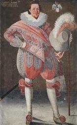 | Keywords: Målning. Porträtt. Officersvän. Herman Cappel - Skoklosters slott - 86526.tif Herman von Cappel överste plain text Stående helfigur fas höger Höger hand i sidan i vänster hand hatt och käpp Röd tröja med skört samt röda pluderhosen med silvergaloner nervikt pipkrage vita strumpor grå skor <br/>Inskrift överst t v HARMAN KAPEL NATVS ANNO 1595 FECIT ANNO 1623 <br/>I övre högra hörnet vapensköld band med fyra öglor <br/>Spikad på ram fastskruvad vid väggen original caption Målning Porträtt Officersvän Herman Cappel SKO 2255<br/> Nyckelord Herrmode Målning Barocken Porträtt Rött Man Cappel Skorosor Fältbindel Krage Föremålsbild Stormaktstiden 1623 oil on canvas size mm 1240 2020 SKO Herman Wrangel riksråd fältmarskalk place of origin original filename sm_dig4402_2255 23513 inventory number SKO 2255 86526 PD Jens Mohr Jens Mohr Georg Günther Kräill 17th-century portrait paintings in Sweden 1623 1620s paintings in Sweden 1623 portrait paintings Male 17th-century men of Sweden 1623 17th-century portrait paintings of men at full length 1623 17th-century portraits with coat of arms 1623 Accessories for shoes Baroque paintings Male clothing Male shoes in portrait paintings 1623 Portrait paintings of men holding hats 1623 Portrait paintings of men with swords 1623 Right hand on hip in portrait paintings 1623 Sweden 1611-1718 Media contributed by LSH unmatched creator Media contributed by LSH unmatched keyword Media contributed by LSH 2013-10 |