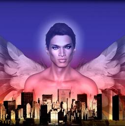 Keywords: man angel city buildings sky halo wings male person good religion angeles los human moral young spirit pre-made background handsome outdoors community