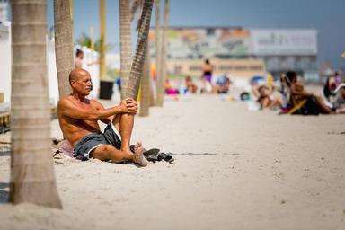 Keywords: man beach sand summer sitting thinking sunshine natural