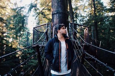 Keywords: man bridge footwalk male young person lifestyle outdoors forest leisure footbridge