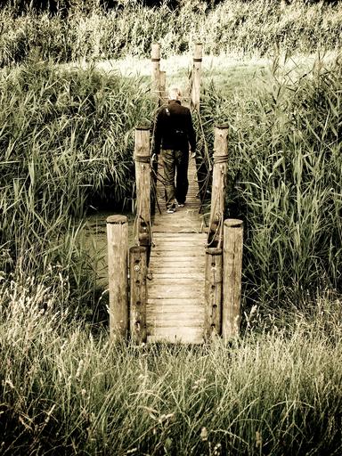 Keywords: man bridge green rural park male outdoor