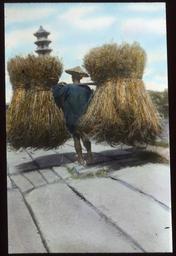 | Keywords: Man carrying two large bundles of straw, China, ca.1917-1923 (IMP-YDS-RG224-OV1-0000-0041).jpg en <br> Man carrying two large bundles of straw China ca 1917-1923 Carrying a load of straw Note pagoda in the background and the coolie s straw hat ; From the lantern slide show of Rolland and Lottie Welch who served under the United Evangelical Mission / Evangelical church in Hunan China from 1917 to 1923 Subject aat general views Photographer Unidentified Filename IMP-YDS-RG224-OV1-0000-0041 Coverage date 1917/1923 Subject unesco Agriculture Part of collection International Mission Photography Archive ca 1860-ca 1960 Type images Part of subcollection Photographs from the Yale Divinity School Library New Haven Connecticut ca 1880-1950 Repository name Yale University Divinity School Day Missions Library Archival file impa_Volume290/IMP-YDS-RG224-OV1-0000-0041 tiff Repository address Yale University Divinity School Library 409 Prospect Street New Haven CT 06511 Geographic subject country China Geographic subject continent Asia Rights Yale University Divinity School Day Missions Library Part of series Yale Divinity Library Special Collections; Rolland and Lottie Welch Papers Repository email Divinity Library yale edu Date created 1920/1940 Publisher of the digital version University of Southern California Libraries Format aat lantern slides Legacy record ID impa-m66664 Access conditions http //www library yale edu/div/reproductions html File YDS/RG224/OV1/0000/0041 1920/1940 Unidentified http //digitallibrary usc edu/cdm/ref/collection/p15799coll123/id/51588 PD-old-70-1923 Magic lantern images Images from USC Digital Library uploaded by Fæ International Mission Photography Archive ca 1860-ca 1960 Harvest in China Conical hats |