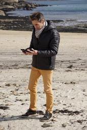 Keywords: man character people market promenade phone mobile phone humans