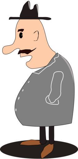 Keywords: man coat standing hat male guy cartoon stand slouching moustache