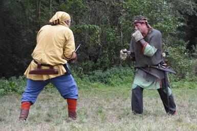 Keywords: man fighting sword outfit clothing people fight