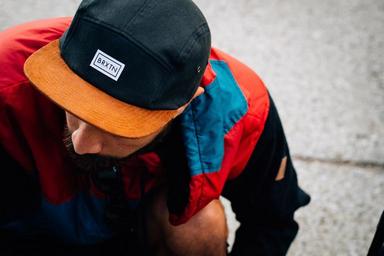 Keywords: man hat colorful jacket looking down