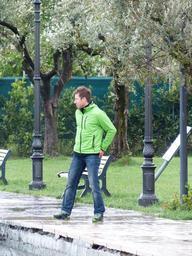 Keywords: man human wind windy forward storm hair jacket green wait stretched