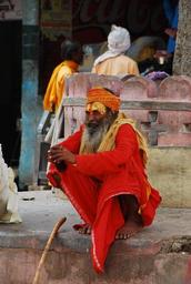 Keywords: man india the locals orange clothes face painting travel traditions tradition barefoot old beard