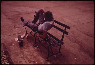 | Keywords: MAN LOUNGING ON A PARK BENCH WITH HIS RADIO ON THE REIS PARK BOARDWALK IN NEW YORK CITY. THE INNER CITY TODAY IS AN... - NARA - 555924.jpg Scope and content General notes 555924 Local identifier 412-DA-13472 Environmental Protection Agency 12/02/1970 - NARA-Author Lyon Danny 1942- Photographer 1709309 <br /> New York New York state United States North and Central America inhabited place 4191644 40 7 -74 <br /> Still Picture Records Section Special Media Archives Services Division NWCS-S National Archives at College Park 8601 Adelphi Road College Park MD 20740-6001 07/1974 Record group Record Group 412 Records of the Environmental Protection Agency 1944 - 2006 Record group ARC 708 DOCUMERICA The Environmental Protection Agency's Program to Photographically Document Subjects of Environmental Concern compiled 1972 - 1977 Series ARC 542493 File unit File unit ARC Variant control numbers Agency-Assigned Identifier 225/32/013472<br /> NAIL Control Number NWDNS-412-DA-13472 Other versions <gallery> File MAN_LOUNGING_ON_A_PARK_BENCH_WITH_HIS_RADIO_ON_THE_REIS_PARK_BOARDWALK_IN_NEW_YORK_CITY _THE_INNER_CITY_TODAY_IS_AN _-_NARA_-_555924 tif tif File MAN_LOUNGING_ON_A_PARK_BENCH_WITH_HIS_RADIO_ON_THE_REIS_PARK_BOARDWALK_IN_NEW_YORK_CITY _THE_INNER_CITY_TODAY_IS_AN _-_NARA_-_555924 jpg jpg </gallery> NARA-cooperation PD-USGov Danny Lyon 1974 in New York City People on benches |