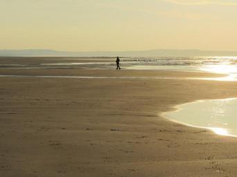 Keywords: man market beach evening pas de calais france sunset sea sand walk silhouette seagulls