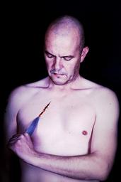 Keywords: man model male portrait photographer knife section digital reality deception photo photo montage photography lowkey