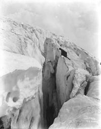 | Keywords: Man peering into crevasse in Paradise Glacier, Mount Rainier National Park, Washington, 1913 (BAR 86).jpeg Photograph Creator Albert Henry Barnes On front of image Copy 1913 by A H Barnes On sleeve of negative Mt Tacoma Paradise Ice crevasse with man Subjects LCTGM Glaciers--Washington State --Mount Rainier National Park Subjects LCSH Glacial crevasses--Washington State --Mount Rainier National Park; Paradise Glacier Wash ; Mount Rainier National Park Wash depicted place Mount Rainier 1913 Silver gelatin b/w Institution University of Washington UWASH-AHBarnes-source accession number 86 PD-old-auto-1923 1920 Information field Order Number BAR217 Mount Rainier in 1913 Crevasses in the United States Paradise Glacier Crevasses at Mount Rainier |