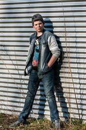 Keywords: man people teen cool tough stand iron hat boy watch face winter faces netherlands focus child hands in pockets relaxed lean hang outdoor