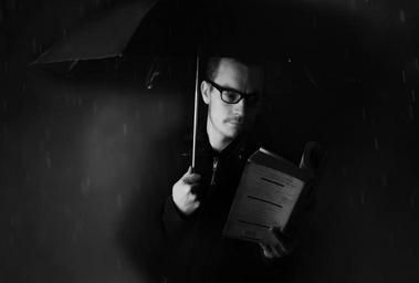 Keywords: man people umbrella rain book weather night dark wet raindrops shadow face skin glasses