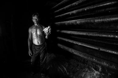 Keywords: man portrait worker indoor black and white