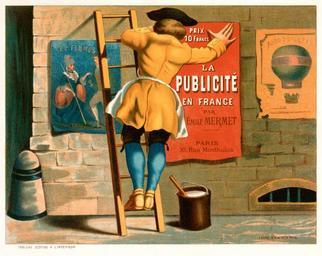| Keywords: Man posting an advertisement for La publicité en France par Emile Mermet.jpg Assessments 1 L ™Afficheur accession number LCCN2002717299 creator unknown credit line Published Paris F Appel en Man posting an advertisement for La publicité en France par Emile Mermet on a city wall between a poster of two people captioned les femmes and a poster of a Montgolfier hot-air balloon 1 print chromolithograph exhibition history Tissandier collection <br/>Title devised by Library staff object history object type place of creation LOC-image ppmsca 02627 Man posting an advertisement for La publicité en France par Emile Mermet on a city wall between a poster of two people captioned les femmes and a poster of a Montgolfier hot-air balloon PD-100 Library of Congress Tissandier collection 1870s posters Wooden ladders in France Rue de Montholon Paris 1870s Advertising posters of France Chromolithographs 1878 in Paris Posters in Paris Ladders in Paris Men at work in Paris Ladders in art Buckets in art Buckets in Paris Montgolfier brothers Featured picture sets of Paris Afficheur Images of Paris from the Library of Congress |