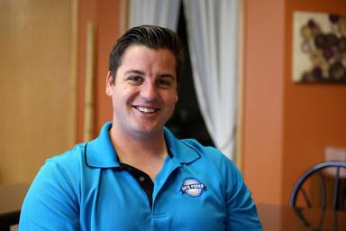 Keywords: man smiling shirt young sitting happy person adult male smile american