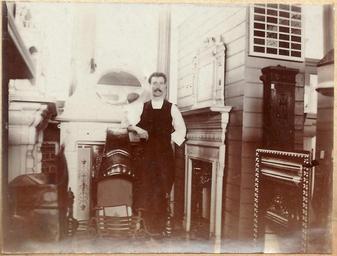 | Keywords: hook edwardian album fireplace shop showroom public domain publicdomain We know that John Hook was a manufacturer of fireplaces and we have seen a picture of him standing in this showroom. But I'm not sure who this man is. See more images from this fascinating Edwardian Hook family album. We know that John Hook was a manufacturer of fireplaces and we have seen a picture of him standing in this showroom. But I'm not sure who this man is. See more images from this fascinating Edwardian Hook family album. |