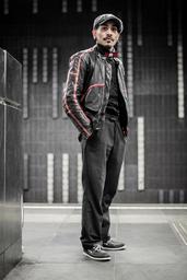 Keywords: man standing portrait male man standing people business adult young confident handsome casual professional success entrepreneur looking fashion hair moustache hat jacket leather sneakers