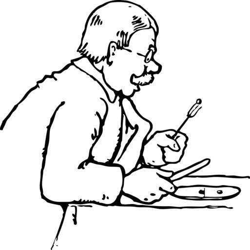 Keywords: man table plate fork eating dinner dining cutlery silverware family dinner table conversation togetherness interacting