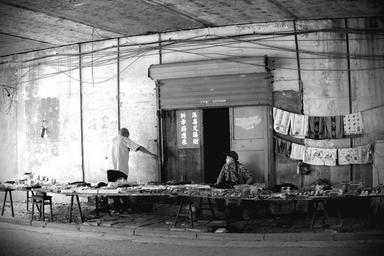 Keywords: man under the bridge life black and white bazar street city seller