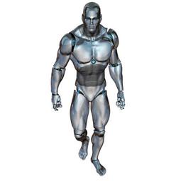 Keywords: man walking robot cyborg android robotics future artificial intelligence blue silver isolated sci-fi science fiction