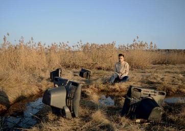 Keywords: man watching tv tv outdoor person field autumn sky human proroganda