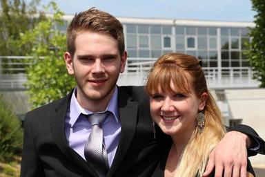 Keywords: man woman outside costume smile happiness happy humans hand hair sky building tree france tie beard black