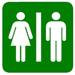 Keywords: man woman restroom bathroom pictogram green seperate sign wc toilette public