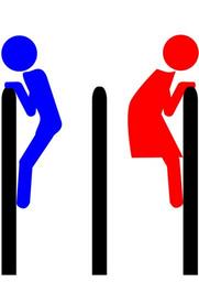 Keywords: man woman sign icon symbol boy lady silhouette female male girl symbols funny toilet pictogram bathroom restroom stickman stick figure matchstick man gents peek signage toilette washroom loo blue red climbing looking